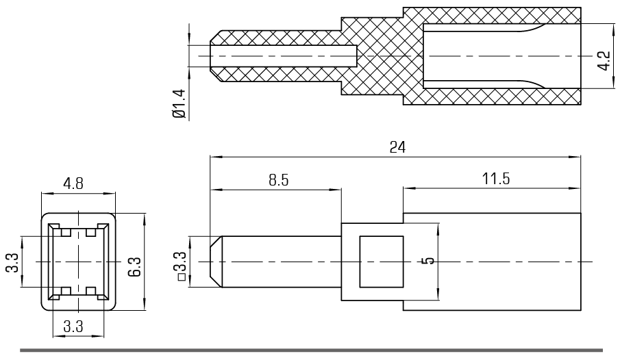 SC4鍵帽系列內(nèi)孔為3.3×3.3配直鍵開(kāi)關(guān) |