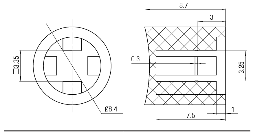 SC4鍵帽系列內(nèi)孔為3.3×3.3配直鍵開(kāi)關(guān) |
