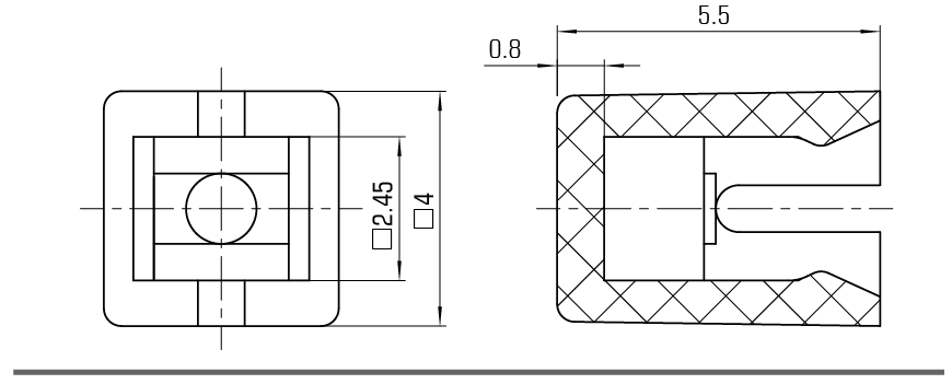 SC5鍵帽系列內(nèi)孔為2.4×2.4配6×6方頭輕觸開關(guān) |